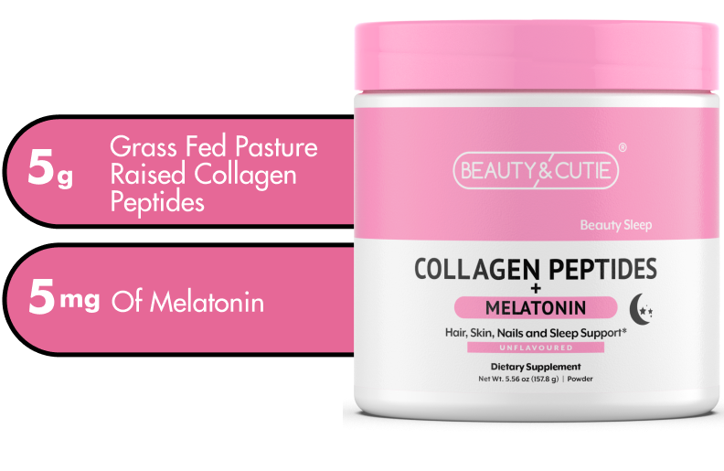 Beauty Sleep combines grass-fed collagen peptides with 5 mg of melatonin to support both overnight recovery and beauty benefits. It’s designed to help you fall asleep naturally while supporting skin, hair, and nails as you rest.